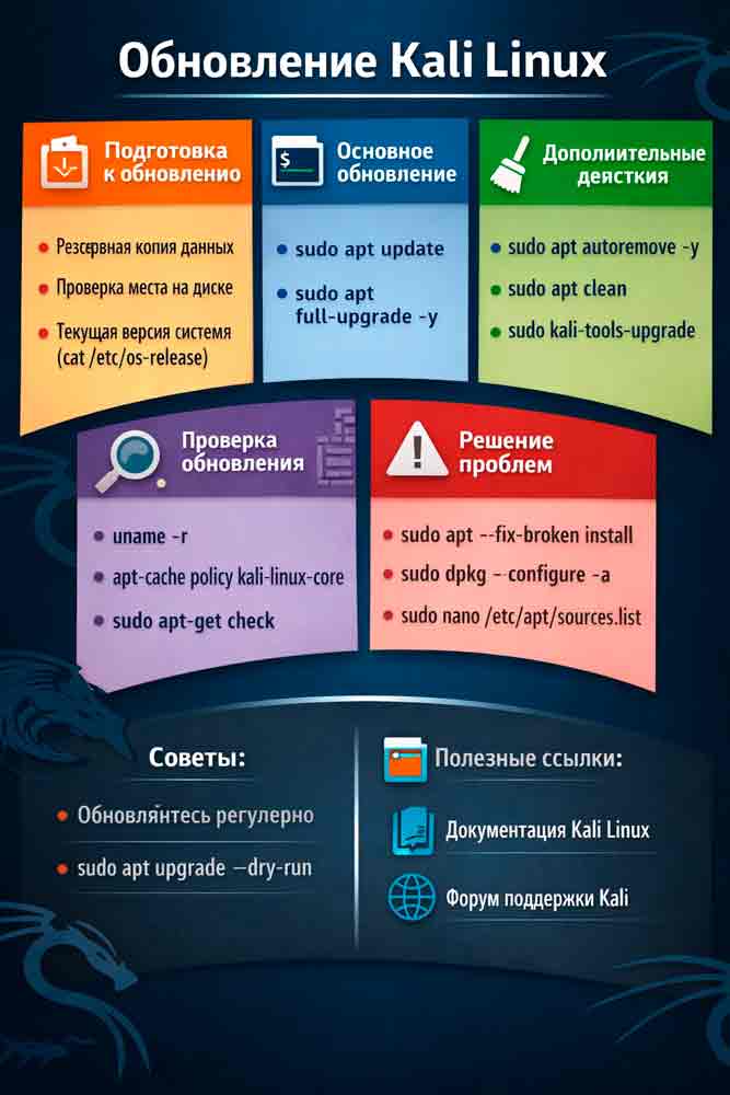Обновление Kali Linux Содержание: Подготовка к обновлению Основное обновление Дополнительные действия Проверка обновления Решение проблем
