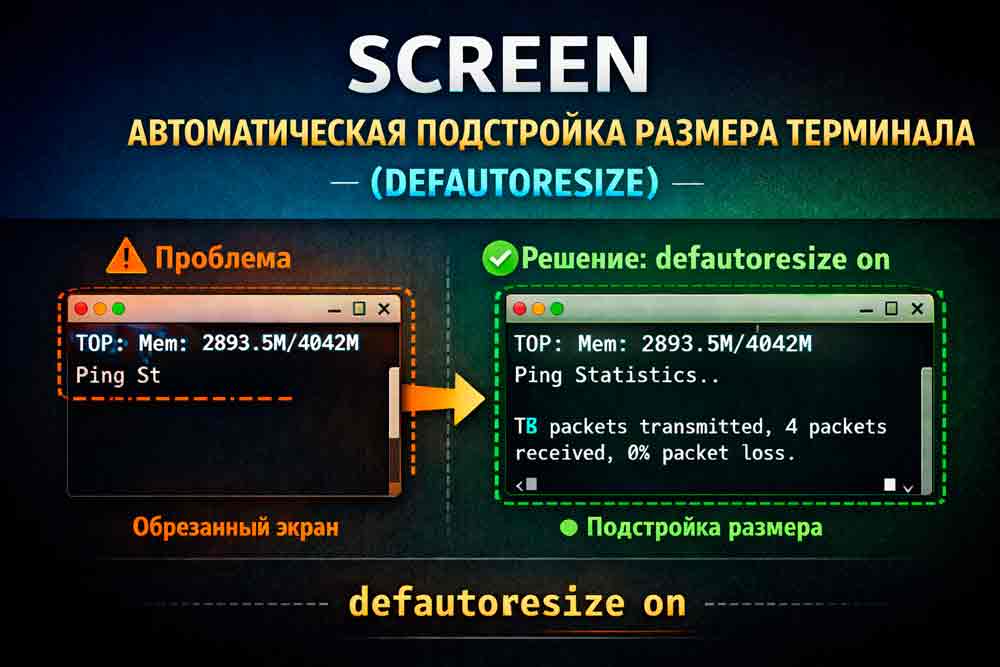 GNU screen: авто-подстройка размеров терминала (defautoresize)