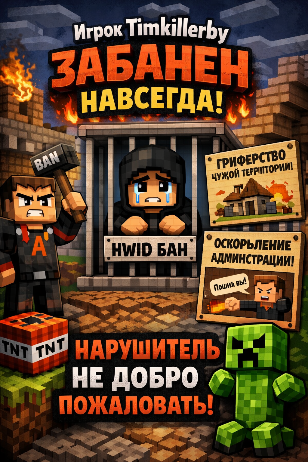 Перманентная блокировка игрока Timkillerby (HWID) без права обжалования