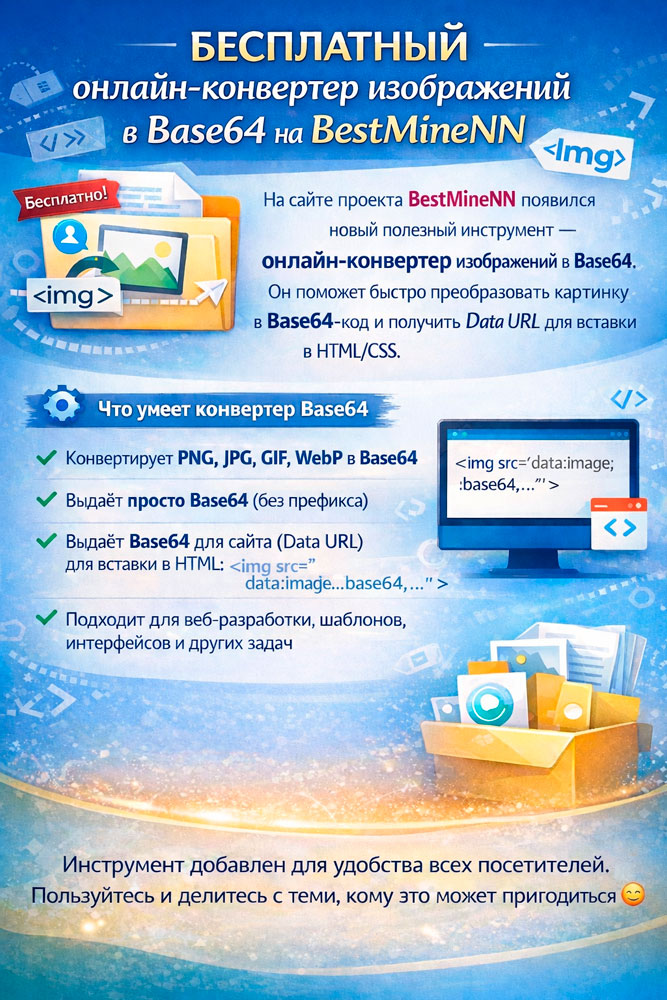 БЕСПЛАТНЫЙ онлайн-конвертер изображений в Base64 на BestMineNN