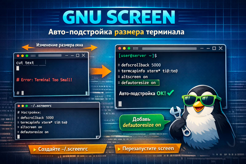 GNU screen: авто-подстройка размеров терминала (defautoresize)